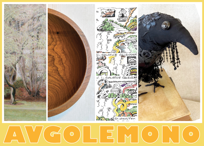 Every year we offer members an opportunity to share a never before seen piece of artwork in this eclectic show. As we continue the tradition of this “community” soup-inspired exhibition, this year we are calling it Avgolemono after the Greek lemon chicken soup.